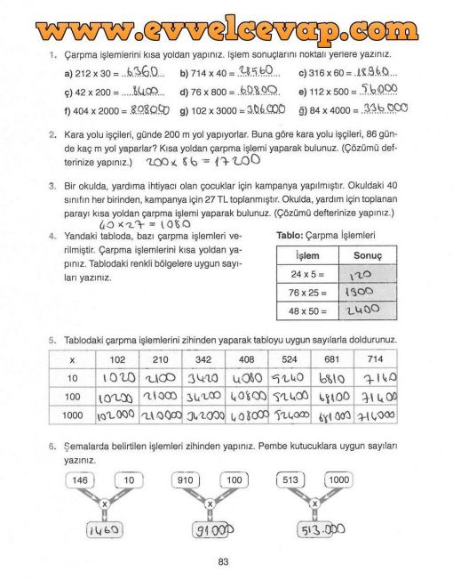 4 / A - Matematik - Ders kitabından sayfa 84 ve ...